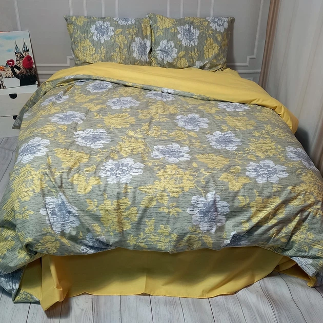 Комплект постільної білизни MERISET 120091097 Сімейний на резинці Ранфорс Жовтий