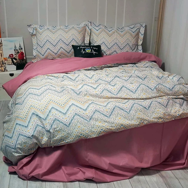 Комплект постільної білизни MERISET 120090166 Сімейний на резинці Ранфорс Рожевий