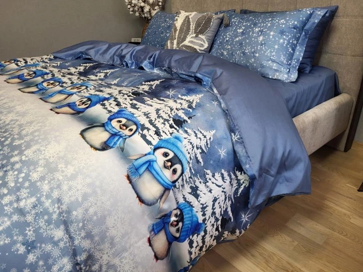 Постільна білизна LITTLE PENGUINS, сатин PREMIUM Двухспальний розмір, наволочки 50/70
