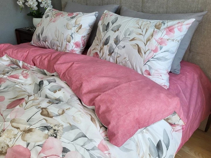 Постільна білизна з резинкою Adagio coral, ранфорс Полуторний розмір, наволочки 50/70