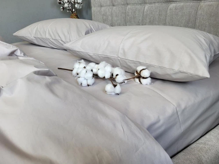 Постільна білизна з резинкою Світло-сірий, ранфорс Евро розмір, наволочки 70/70