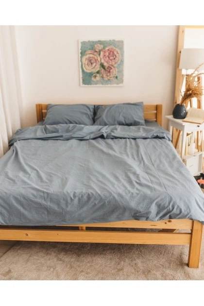 Постільна білизна з резинкою Сланцево-сірий(W1011) варена бавовна Сімейний розмір, наволочки 50/70
