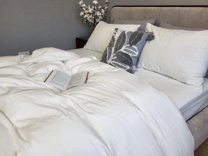 Постільна білизна з резинкою Молочний(W1341) варена бавовна Сімейний розмір, наволочки 50/70