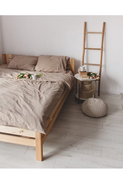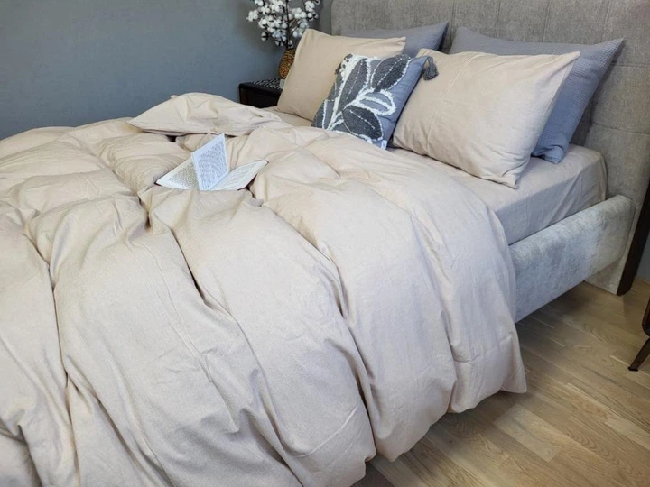 Постільна білизна з резинкою Беж варена бавовна Сімейний розмір, наволочки 70/70