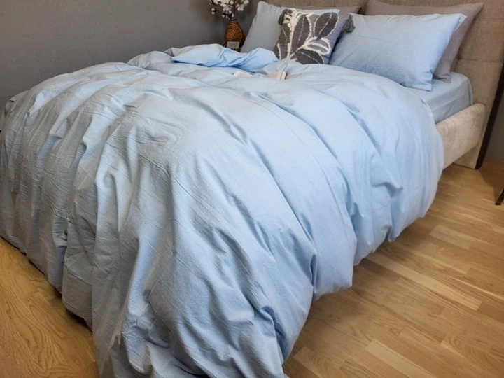 Постільна білизна з резинкою Небесно-блакитний(W1281) варена бавовна Сімейний розмір, наволочки 50/70