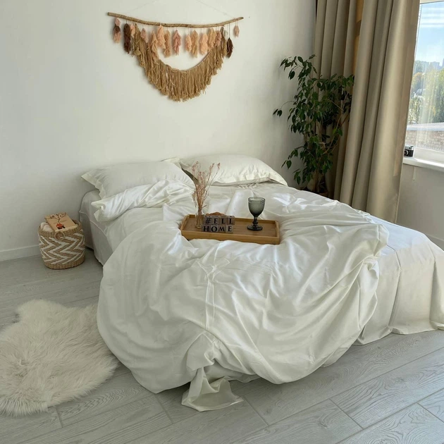 Комплект постільної білизни Ell Home сатин PREMIUM (Туреччина) молочний євро 50/70 на резинці 160/200
