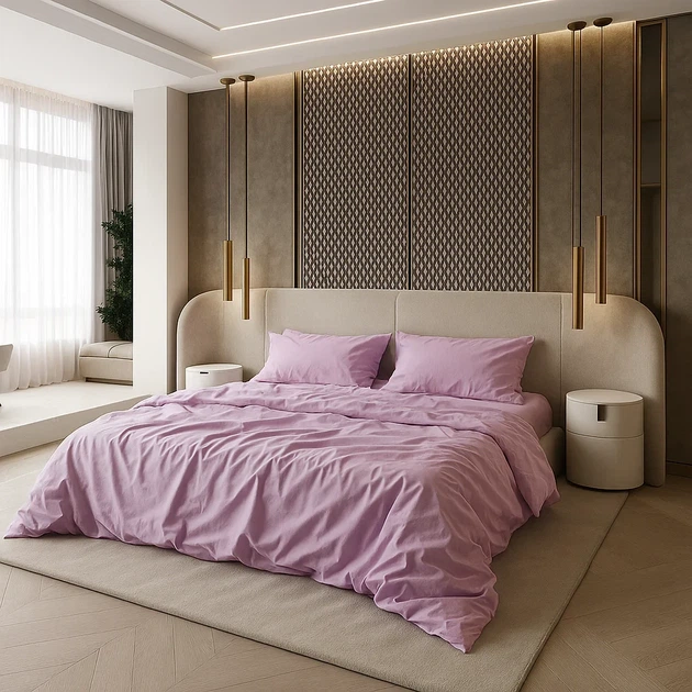 Постільна білизна “Ліловий Туман” з ранфорсу – сімейний, простирадло на гумці, наволочки 5070, у коробці та мішечку