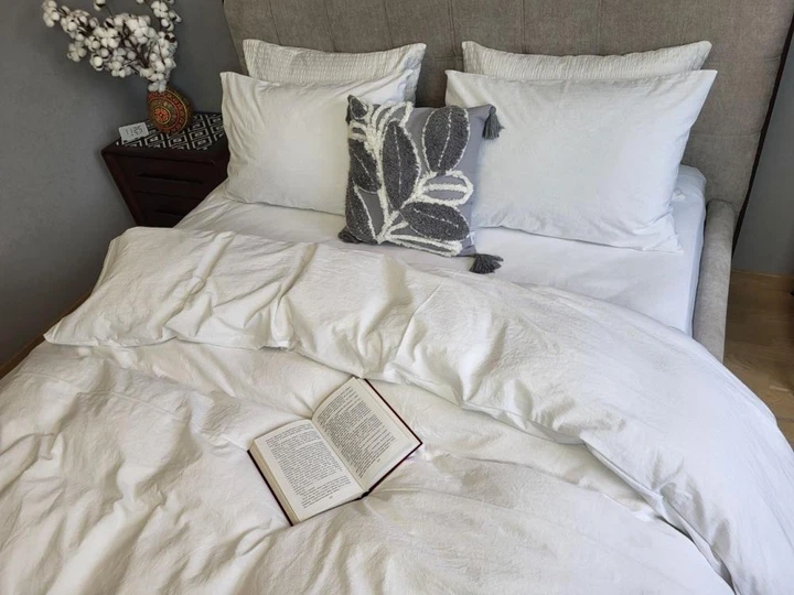 Постільна білизна з резинкою White варена бавовна Сімейний розмір, наволочки 50/70