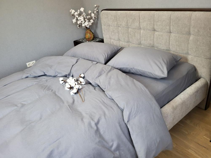 Постільна білизна з резинкою Сіра гавань, фланель(байка) Сімейний розмір, наволочки 70/70