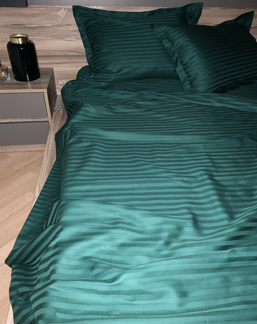 Однотонна постільна білизна Преміум MLS Сатин Страйп комплект Євро 200*220/70*70 емеральд