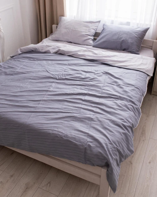Постільна білизна з резинкою ROYAL GRAY, сатин страйп PREMIUM 2/2см Полуторний розмір, наволочки 70/70