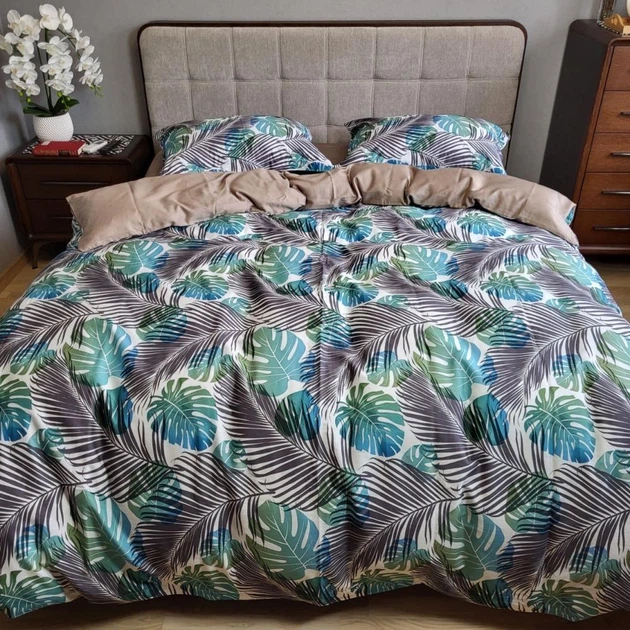Постільна білизна з резинкою TROPICS, сатин PREMIUM Полуторний розмір, наволочки 50/70