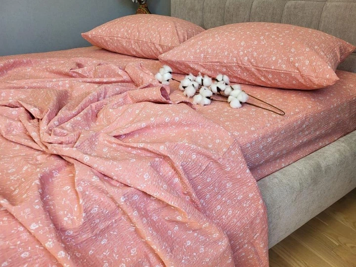 Постільна білизна Карамелька рож., ранфорс гофра (жатка) Сімейний розмір, наволочки 70/70