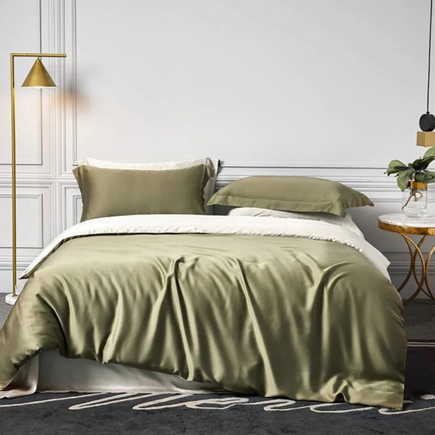 Комплект постільної білизни MERISET 120090122 Двоспальний Сатин однотон Оливковий