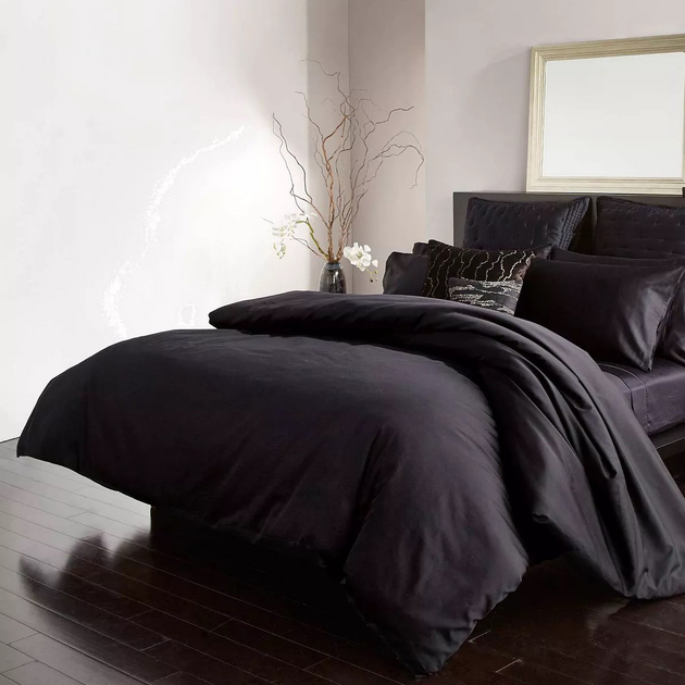 Комплект постільної білизни MERISET 120090521 Двоспальний Сатин однотон Чорний