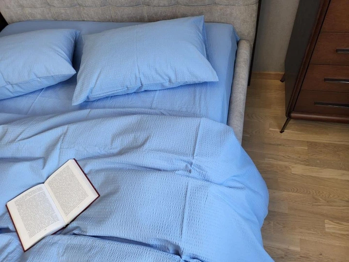Постільна білизна Блакитний GS143, ранфорс гофра (жатка) Сімейний розмір, наволочки 70/70