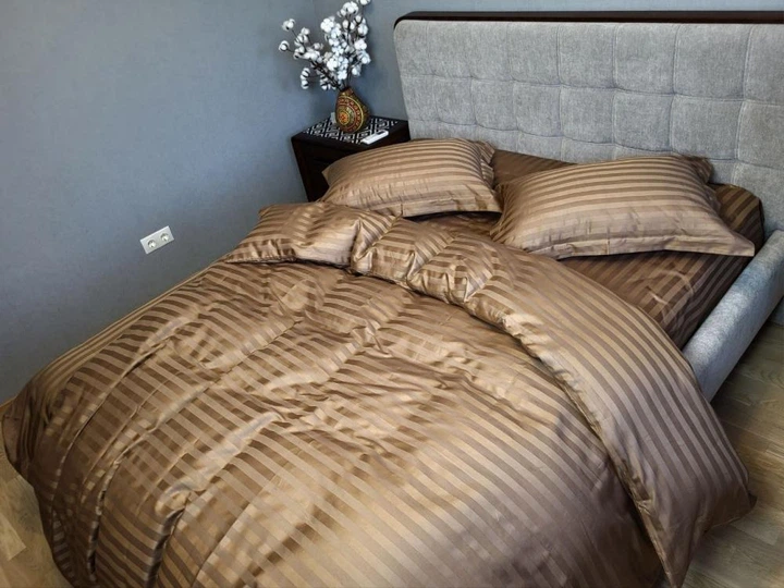 Постільна білизна однотонна Шоколадна, євро розмір 200х220 см, турецький сатин страйп преміум, смужка 2/2 см, наволочки 50х7