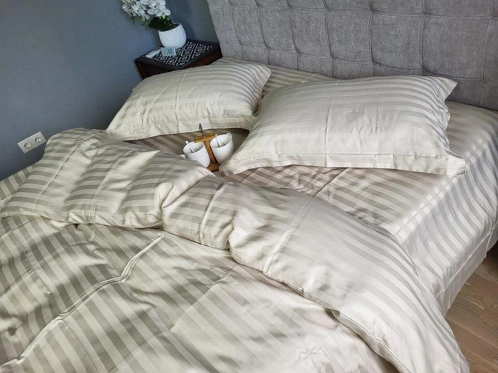 Постільна білизна однотонна Бежева, євро розмір 200х220 см, турецький сатин страйп преміум, смужка 2/2 см, наволочки 70х70,