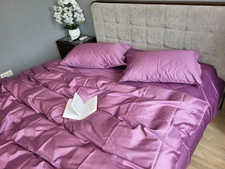 Постільна білизна однотонна Ягідна, євро розмір 200х220 см, турецький сатин преміум, наволочки 70х70, 100 бавовна