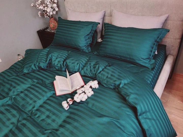 Постільна білизна однотонна Глибокий Смарагдовий, євро розмір 200х220 см, турецький сатин страйп преміум, смужка 2/2 см, нав