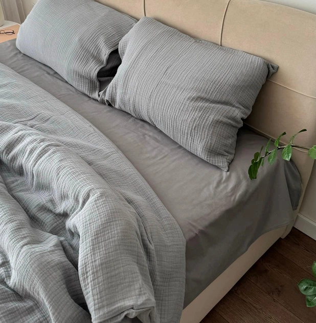 Комплект з преміального 4-х шарового мусліну LavSon Двоспальний 180х220 простирадло ранфорс 220х230 Сірий