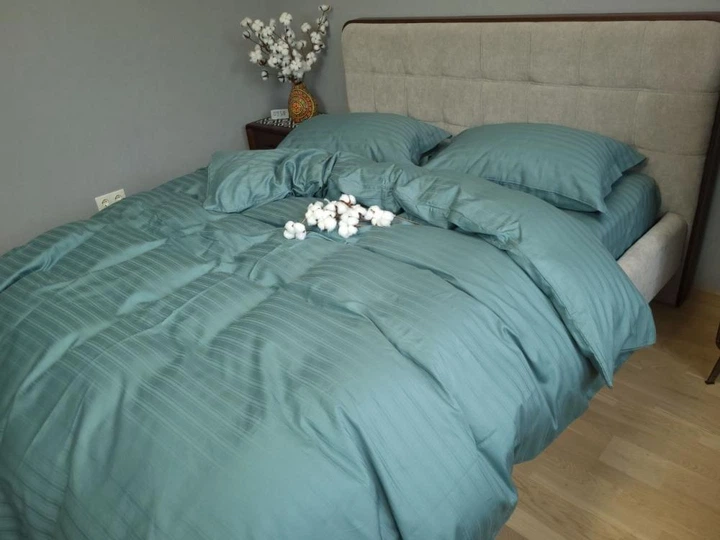 Постільна білизна однотонна Морська хвиля, євро розмір 200х220 см, турецький сатин страйп преміум, наволочки 70х70, 100 баво