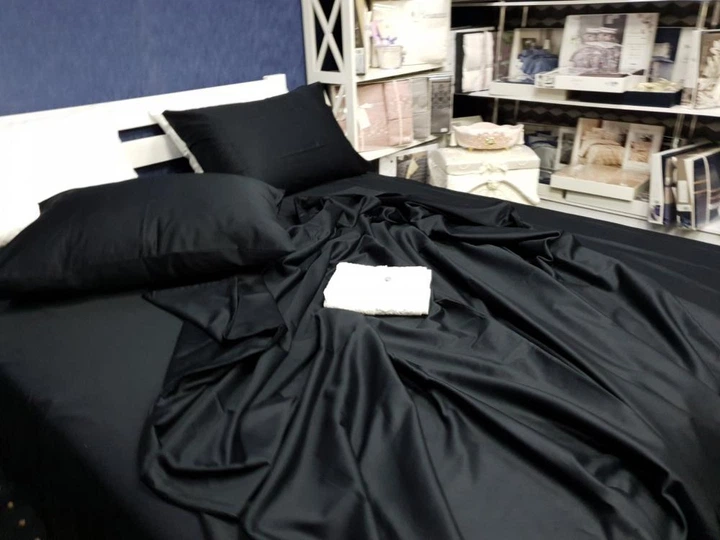Постільна білизна Чорний, сатин PREMIUM Евро розмір, наволочки 50/70