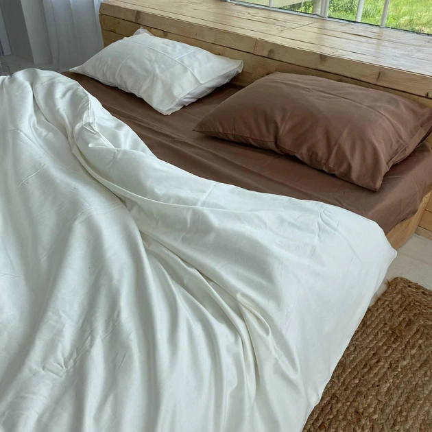 Постільна білизна Карамель + Молочний, сатин PREMIUM Евро розмір, наволочки 50/70