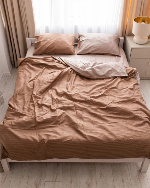 Постільна білизна Карамель + беж страйп сатин PREMIUM Евро розмір, наволочки 50/70