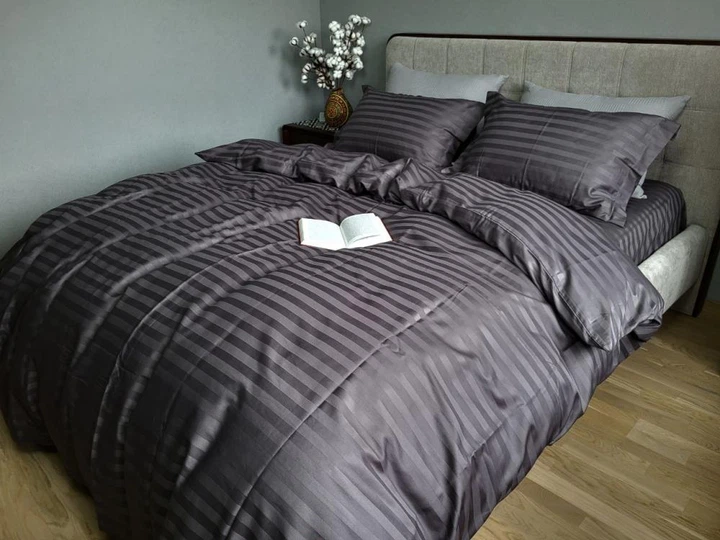 Постільна білизна ROYAL GRAY, сатин страйп PREMIUM 2/2см Евро розмір, наволочки 70/70