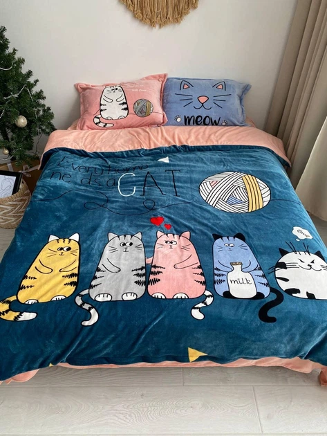 Постільна білизна Коти, плюш Сімейний розмір, наволочки 50/70