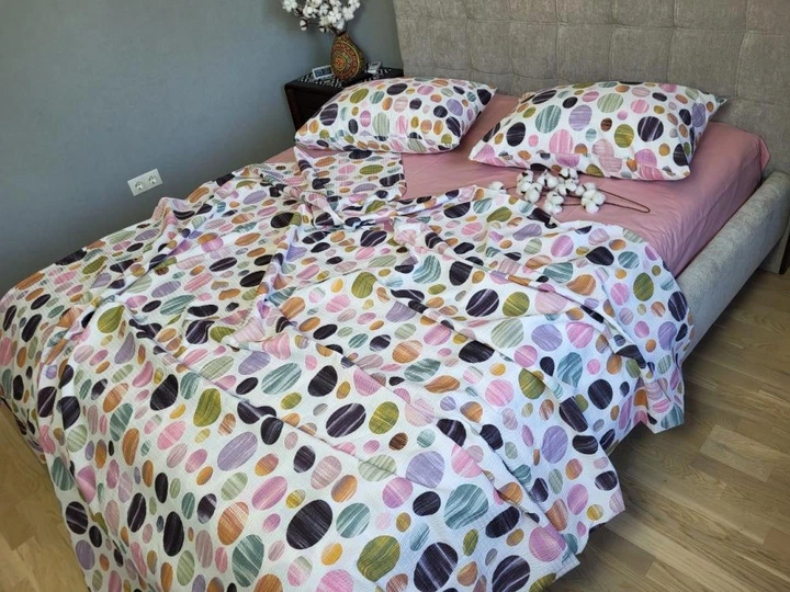 Постільна білизна з резинкою Німфа DUO, ранфорс гофра (жатка) Сімейний розмір, наволочки 50/70