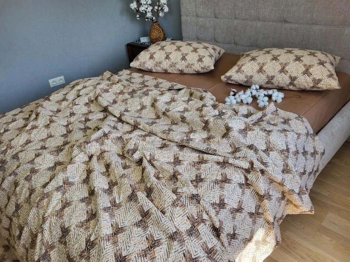 Постільна білизна з резинкою Серпанок мокко, ранфорс гофра (жатка) Сімейний розмір, наволочки 50/70