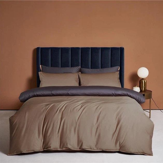 Комплект Постільної Білизни Бежевий Дует Milk Champagne/anthracite Premium Сатин Євро на резинці (226667)