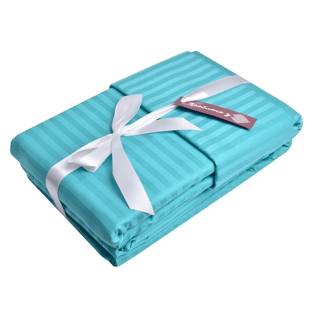 Постільний комплект євро сатин IDEIA у смужку бавовна натуральна тканина набір постільного бірюза