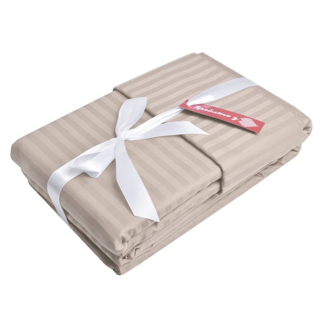 Постільний комплект євро сатин IDEIA у смужку бавовна натуральна тканина набір постільного св.беж