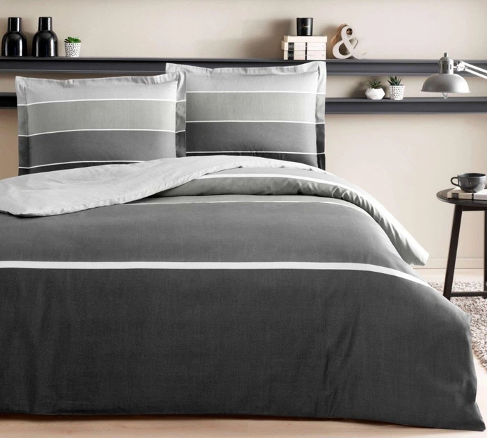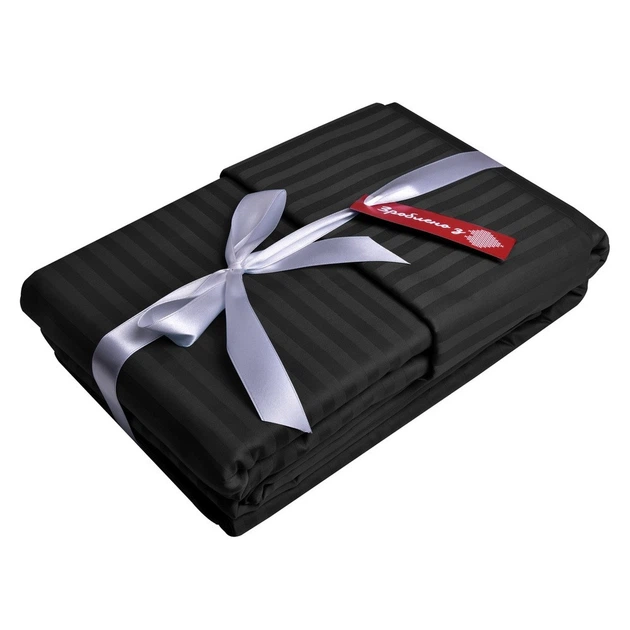 Постільний комплект євро сатин IDEIA у смужку бавовна натуральна тканина набір постільний чорний