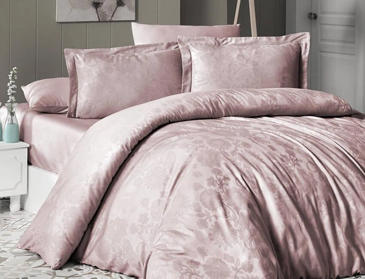 Сімейний Пудровий комплект постільної білизни Belinens/ преміумний сатин-страйп/ підковдри 2х155х220 см/ 100 бавовна