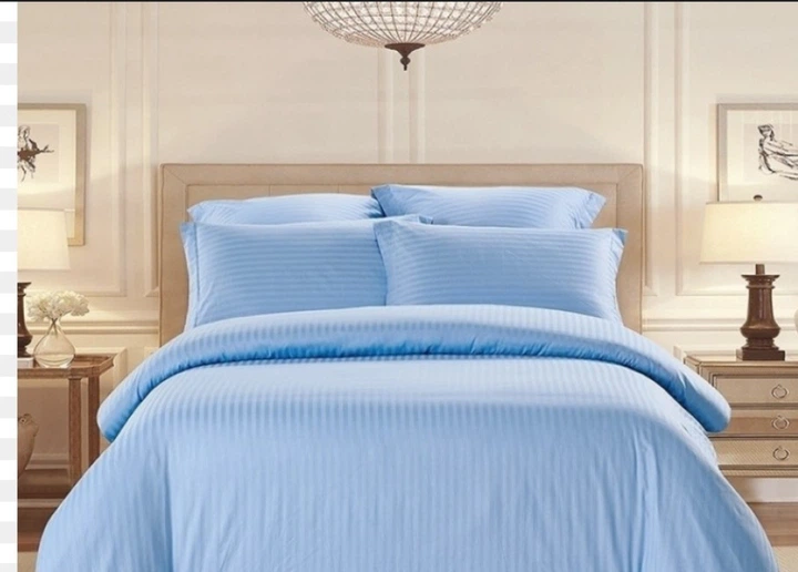 Сімейний Блакиний комплект постільної білизни Belinens/ преміумний сатин-страйп/ підковдри 2х155х220 см/ 100 бавовна