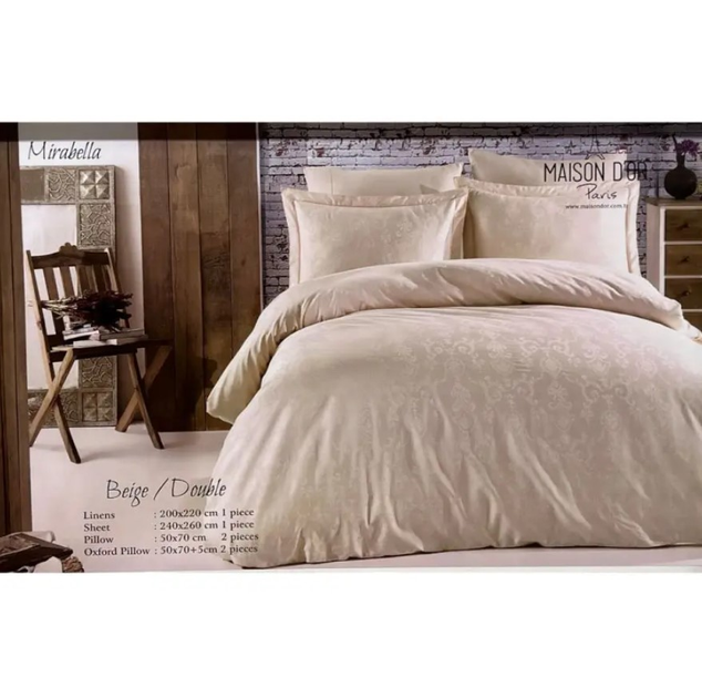Постільна білизна Жаккард Maison Dor MIRABELLA DANTELLA , Бежевий, Євро, 200x220 см, 240x260 см, 50x70 см