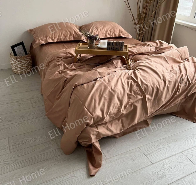Комплект постільної білизни Ell Home сатин PREMIUM (Туреччина) CARAMEL євро 50/70 на резинці 160/200
