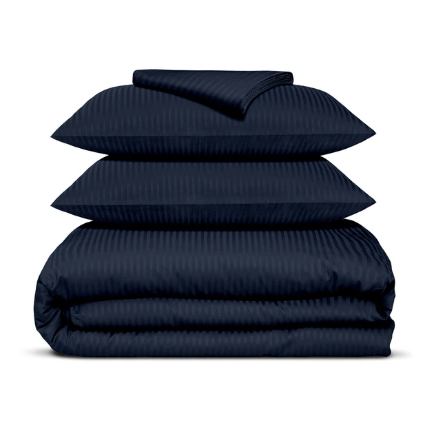 Євро ліжко сатин з простирадлом на гумці NAVY Cosas Синій 200х220 см