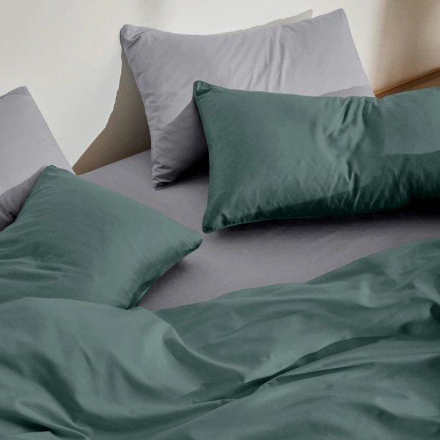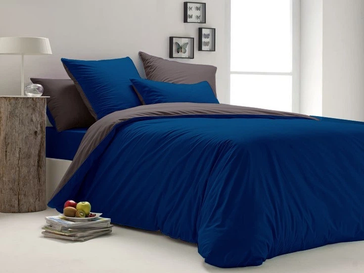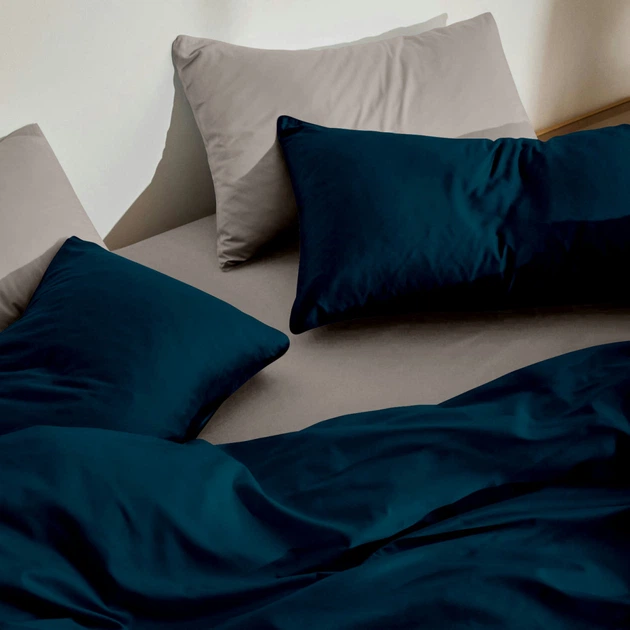 Двосторонній комплект постільної білизни Almira Mix Преміум Сатин Синій + Порох Полуторний