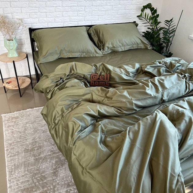 Комплект постільної білизни Ell Home сатин PREMIUM (Туреччина) оливковий сімейний 50/70