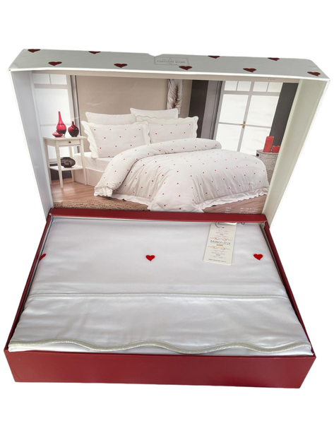 Комплект постільної білизни Maison d'or Les Coeurs White-Red сатин 220-200 см білий