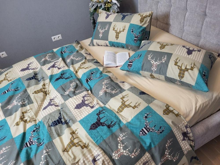 Постільна білизна з резинкою Азарт, фланель(байка) Евро розмір, наволочки 70/70
