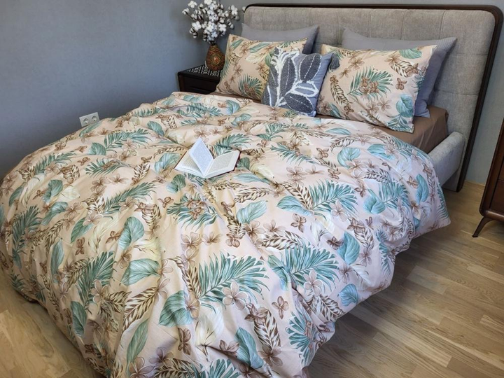 Постільна білизна з резинкою Пальма, ранфорс Евро розмір, наволочки 70/70