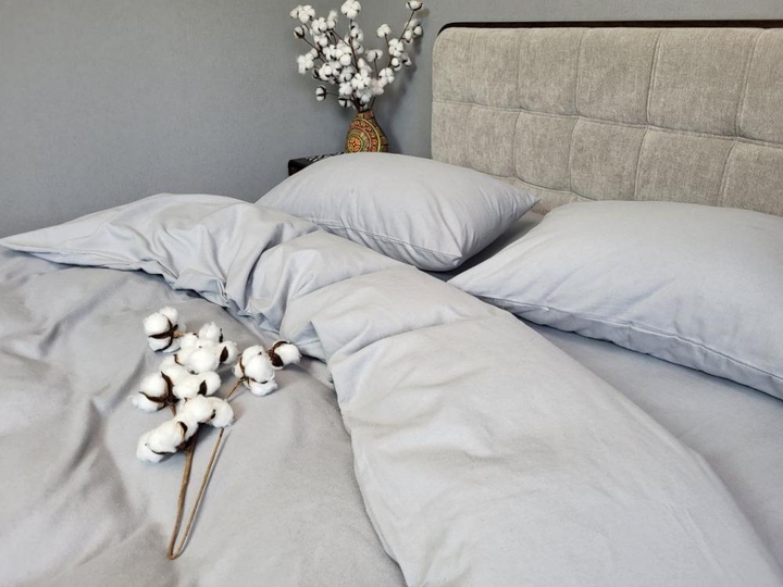 Постільна білизна з резинкою Сірий, фланель(байка) Евро розмір, наволочки 70/70