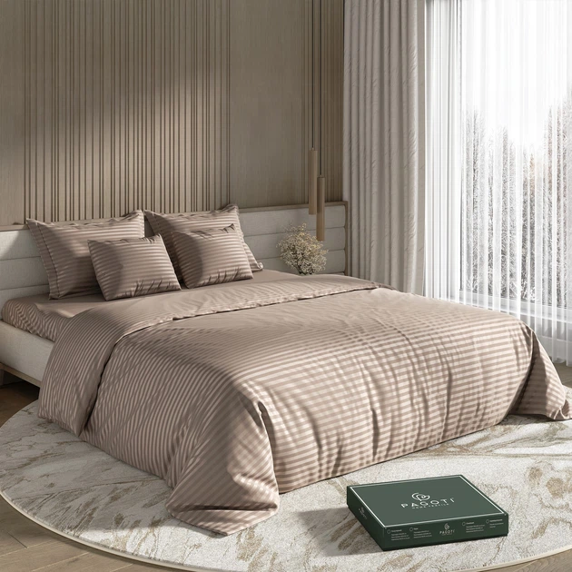 Комплект постільної білизни страйп-сатин PAGOTI Maestro капучино (двоспальний/70х70)