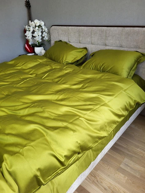 Постільна білизна з резинкою Фісташка, сатин PREMIUM Сімейний розмір, наволочки 50/70
